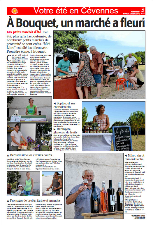 • /Le Petit Marché de Bouquet … en première page du Midi-Libre !
