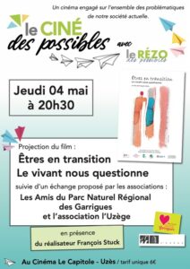« Êtres en transition, le vivant nous questionne », jeudi 4 mai à 20h30 au Cinéma Le Capitole à Uzès.