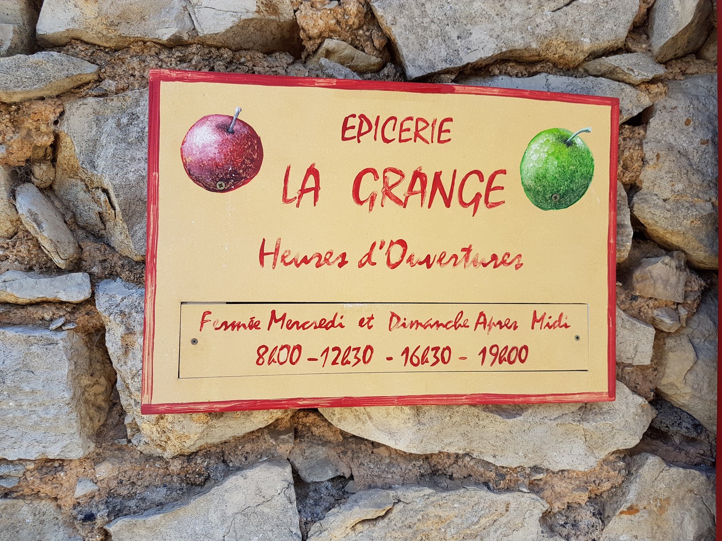 L’ épicerie La Grange, de Fons-sur-Lussan, (ouverte toute l’année 8h à 12h 30, 16h30 à 19h00, fermée mercredis et dimanches après-midi) : tel 04 66 72 89 76. Horaires d’été : du mercredi 12 juillet à celui de fin août 2017, les mercredis sont ouverts aux horaires des autres jours.
