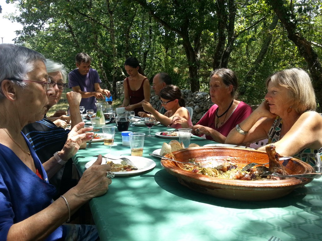 Cette année en particulier, ce déjeuner s’est tenu sous le signe de l’ouverture aux autres. Qu’on en juge : anciens du village, néo-ruraux, Bouquetins d’adoption venus d’au-delà de nos frontières, petits et grands, générations mêlées, gens du nord et gens du sud, voisins de tous nos hameaux, Uzétiens attirés par notre village du bout du monde, chef cuisinier hollandais sachant restituer la quintessence de la cuisine française du sud, … tout était là pour que ce 14 juillet soit un jour de concorde particulièrement réussi.