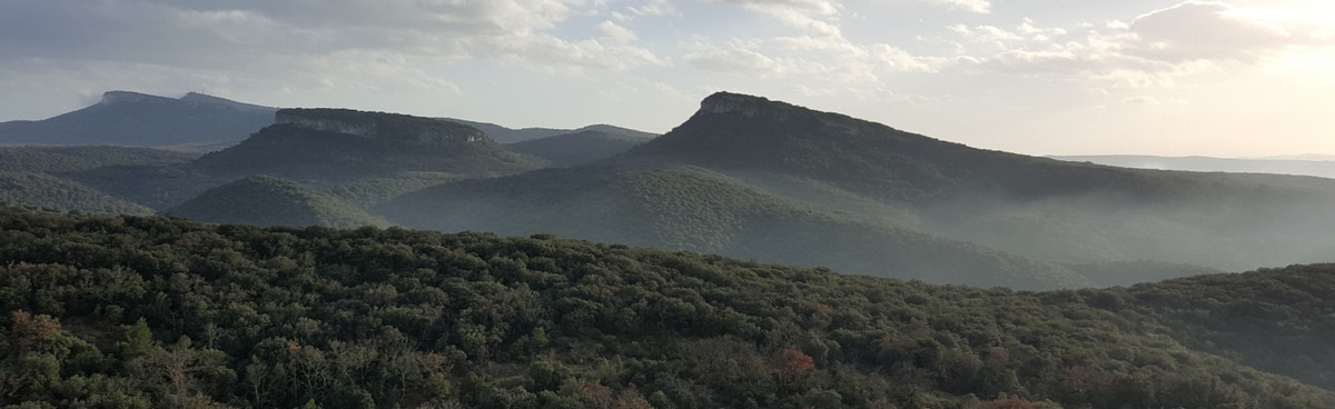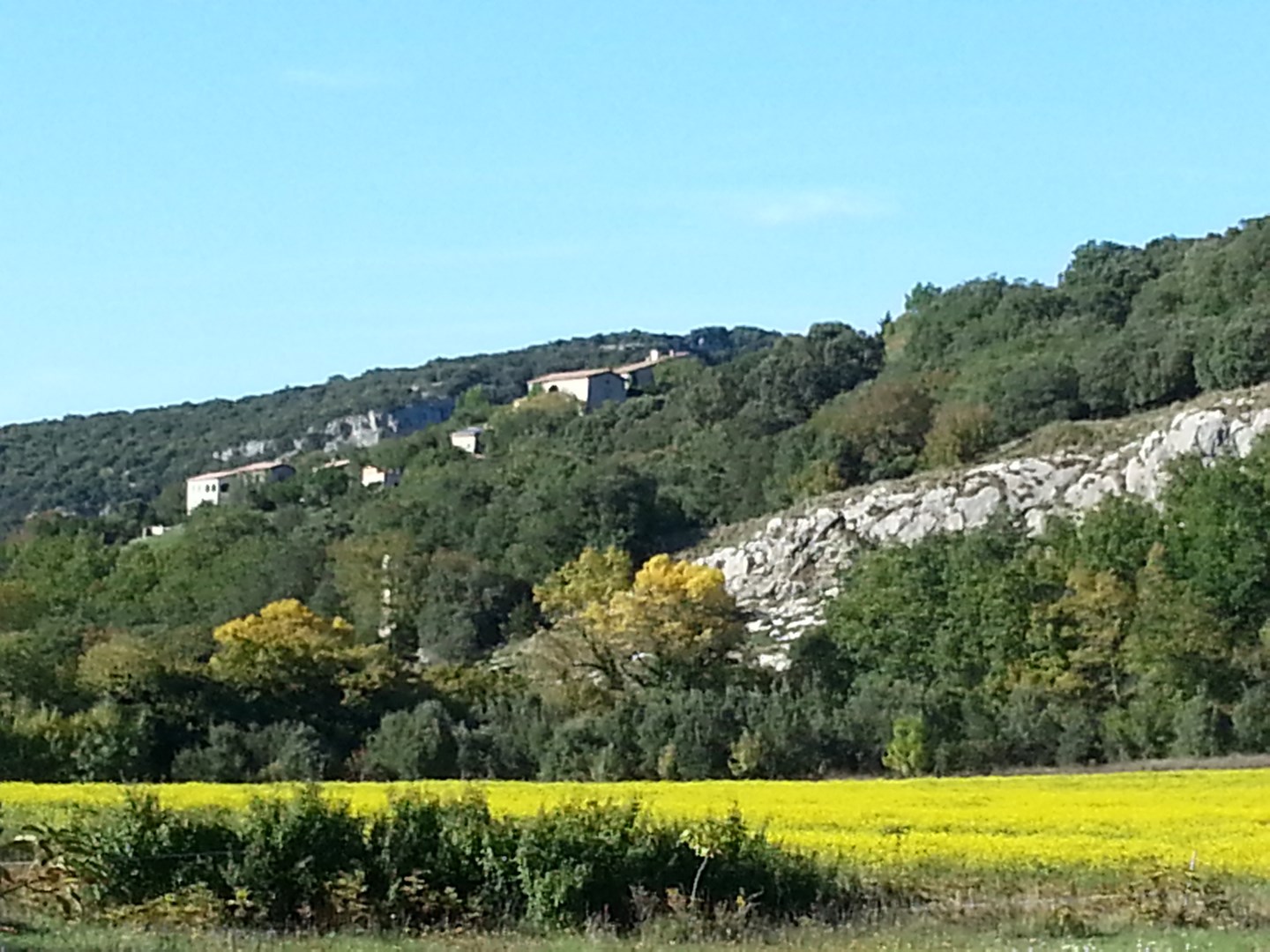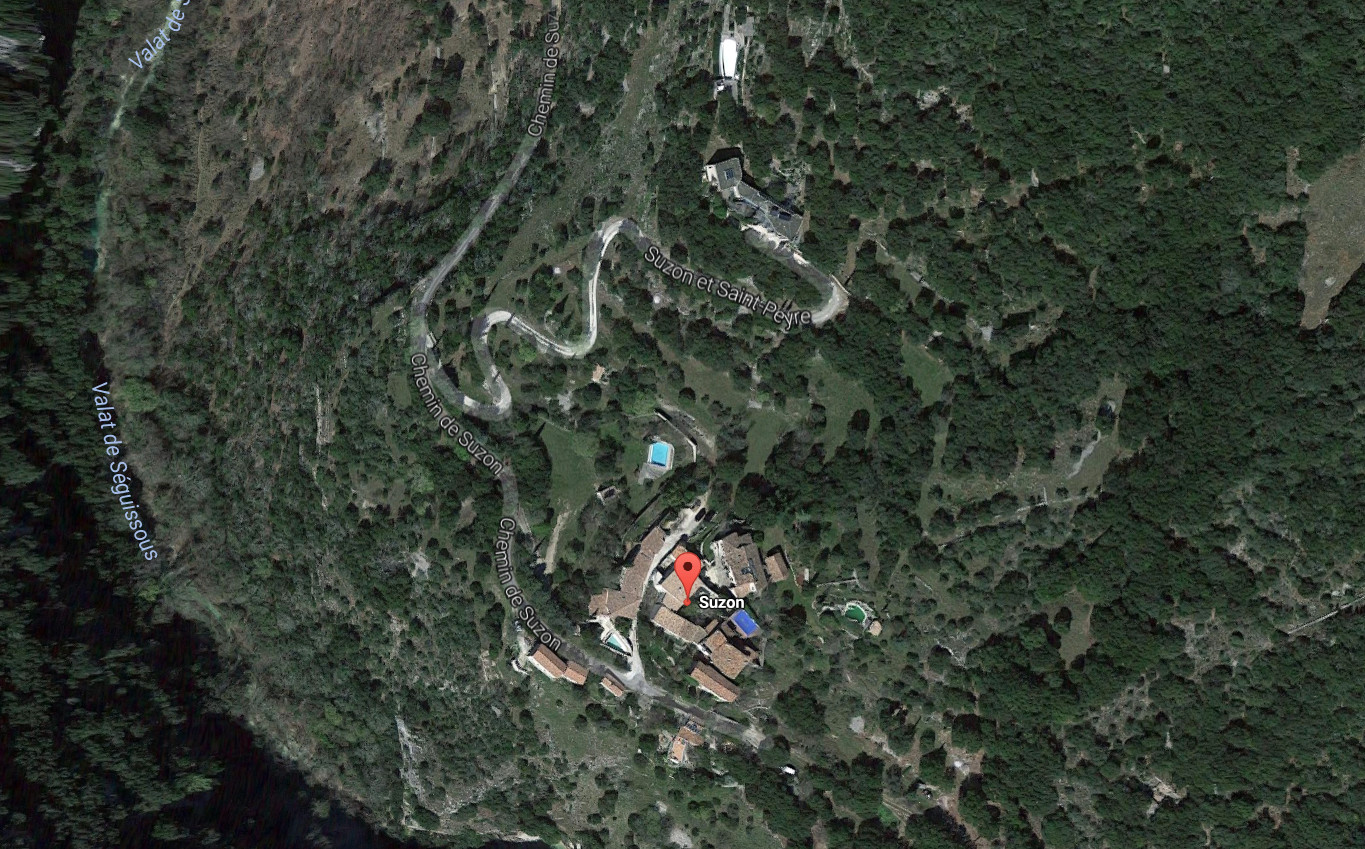 « A partir du hameau de la Bégude, s’ouvre une vallée étroite et profonde, de 4 kilomètres environ d’étendue, et qui, sur cette région, est le seul passage naturel praticable pour franchir la chaîne et gagner le versant opposé. C’est la vallée d’Argensol, parcourue dans toute sa longueur par le ruisseau torrentiel du même nom qui prend son origine dans le voisinage du hameau de Suzon et vient se réunir, près de la Bégude, au ruisseau d’Arlinde. Quand on remonte la vallée d’Argensol, on ne tarde pas à voir se dessiner, dans la direction du midi, un pic d’une forme singulière, identique à celle de l’oppidum de Laudun, connu sous le nom de Camp-de-César, et dont le profil rappelle, avec plus de régularité peut-être, celui de l’Acropole athénien. C’est le pic de SantPèile ou de Suzon, et au sommet duquel s’élevait, suivant M. Germer-Durand et le capitaine Colson, l’ oppidum des Segustones. La colline présente, au nord et au levant, l’aspect d’un cône tronqué à base elliptique, dominé par un plateau horizontal de (…) 300 mètres de diamètre, dont les escarpements verticaux se développent comme une enceinte fortifiée et atteignent de 20 à 26 mètres d’élévation. Du côté du couchant, qui est le seul accessible, le flanc de la montagne s’infléchit suivant une pente d’environ 45°, aboutissant au lit du Séguisson dont les eaux suivent une faille étroite au milieu de rochers abruptes, et se perdent dans les gouffres profonds connus sous le nom des Aiguières, qui séparent le pic de Suzon du mont Lansac. C’est sur le flanc occidental du pic de Suzon que s’élève le hameau du même nom, composé d’une quinzaine d’habitations rurales.