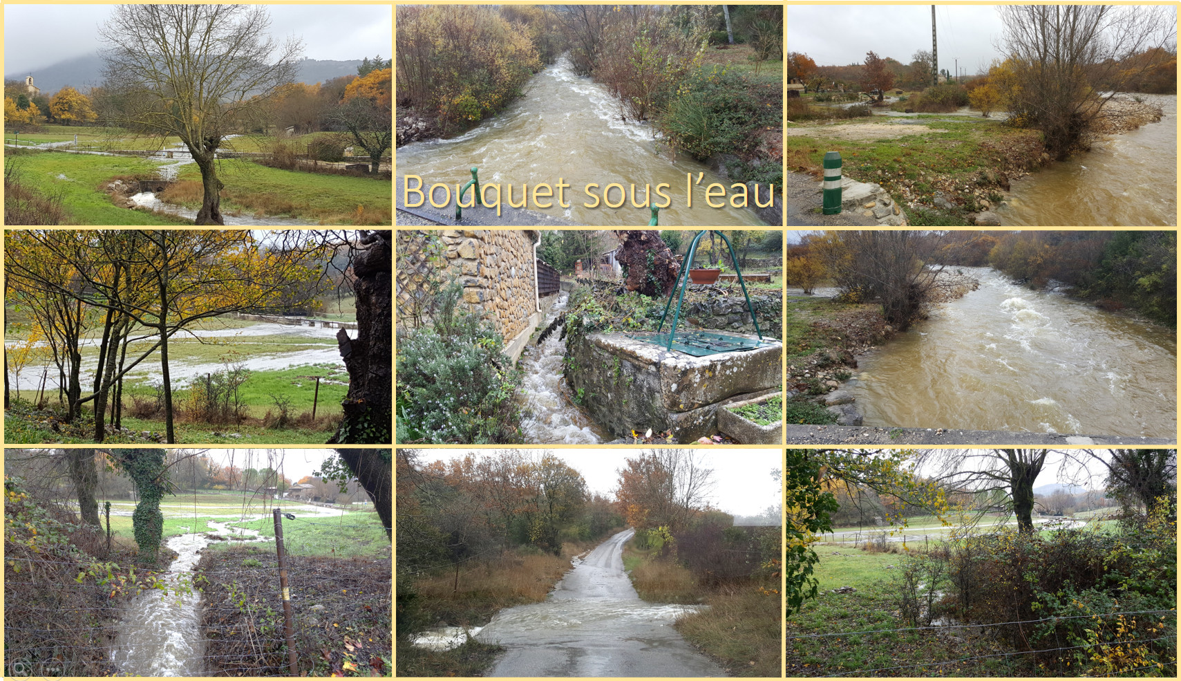 Les fortes pluies et le vent n’arrêtant pas depuis dimanche soir sur Bouquet, soyez vigilants sur les routes de la commune, le Séguissou étant sorti de son lit à certains endroits ! Faites attention particulièrement aux points des ponts ou des endroits submersibles : route 147 et 147A (à Bouquet et sous Suzon), entrée de Mas Ravin, etc…, à éviter autant que faire se peut.