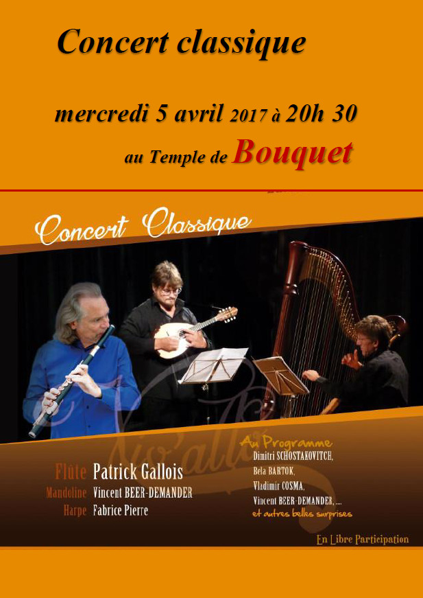 • /Un très beau concert en perspective au Temple de Bouquet mercredi 5 avril 2017 à 20h 30
