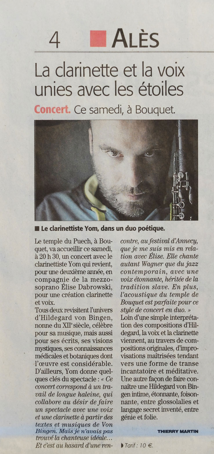 Public qui a découvert pendant le concert qu’ils étaient à la première de cette nouvelle création de Yom, composée sur des textes, le savoir et la langue secrète d’Hildegard Von Bingen.