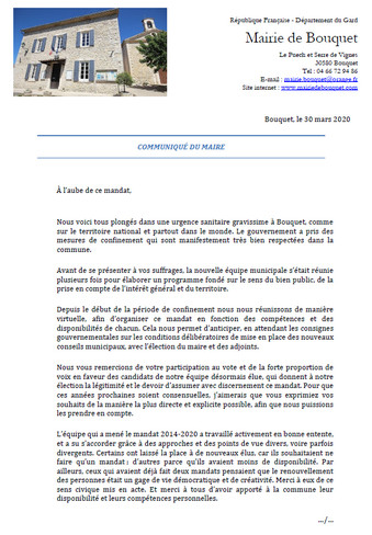 A l’aube de ce nouveau mandat, … le Maire Catherine Ferrière s’adresse à vous - 05/2020 Categories: Vie municipale