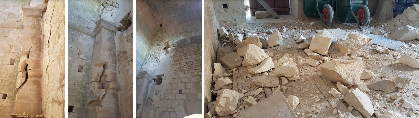 Ce sinistre serait intervenu dans la nuit du 25 au 26 septembre lors des violents orages qui se sont abattus sur la commune. C’est la présidente de l’association du Castellas qui nous en a informés le 23 octobre, lorsque les membres de l’association se sont réunis sur le site pour leur journée de chantier. Entrant dans la tour, ils ont découvert nombre de pierres éclatées et tombées.