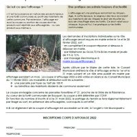 Les demandes d’inscriptions individuelles sur le rôle d’affouage seront reçues en mairie entre le 1e et le 28 février 2022. soit :