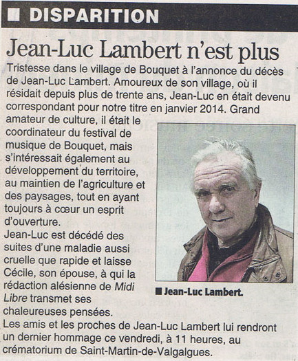 Mr Jean-Luc Lambert nous a quittés le 4 avril 2016
