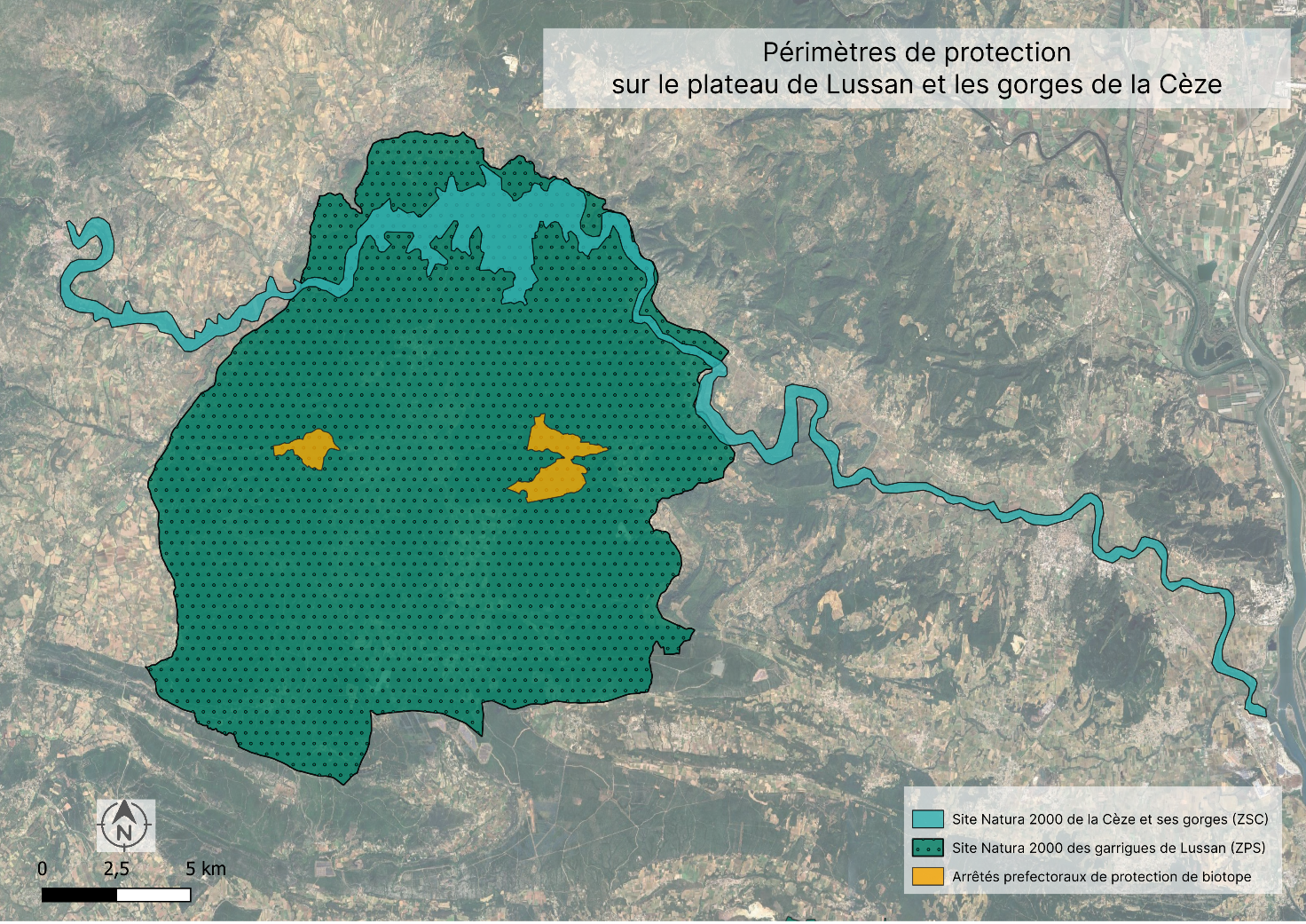 Périmètre des sites Natura 2000 des Garrigues de Lussan, de la Cèze et ses gorges et des Arrêtés de Préfectoraux de Protection de Biotope – SMGG