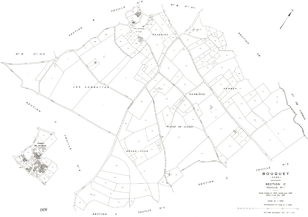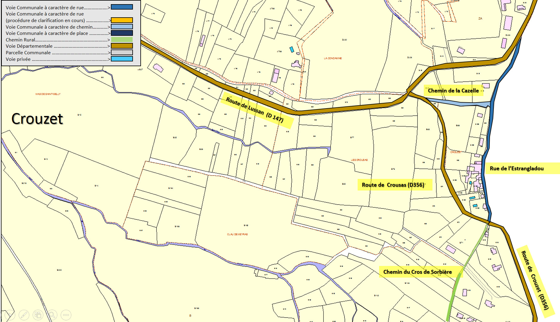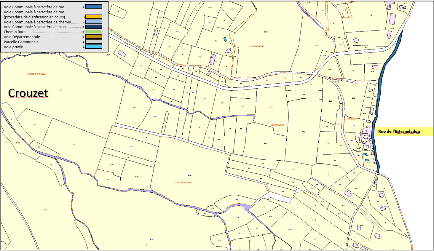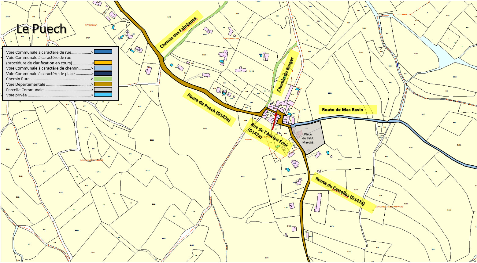 Noms des rues, des routes et des chemins principaux de Bouquet, intégrés par le Cadastre – 2019