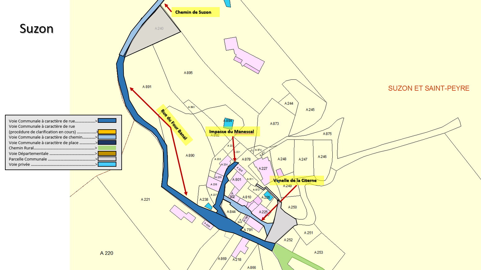 Légendes de la carte de zonage par hameaux : cliquez ici