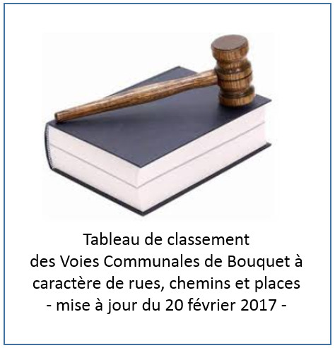 Tableau de classement des Voies communales de Bouquet, mise à jour votée le 20 février 2017, – propriété publique de la Commune