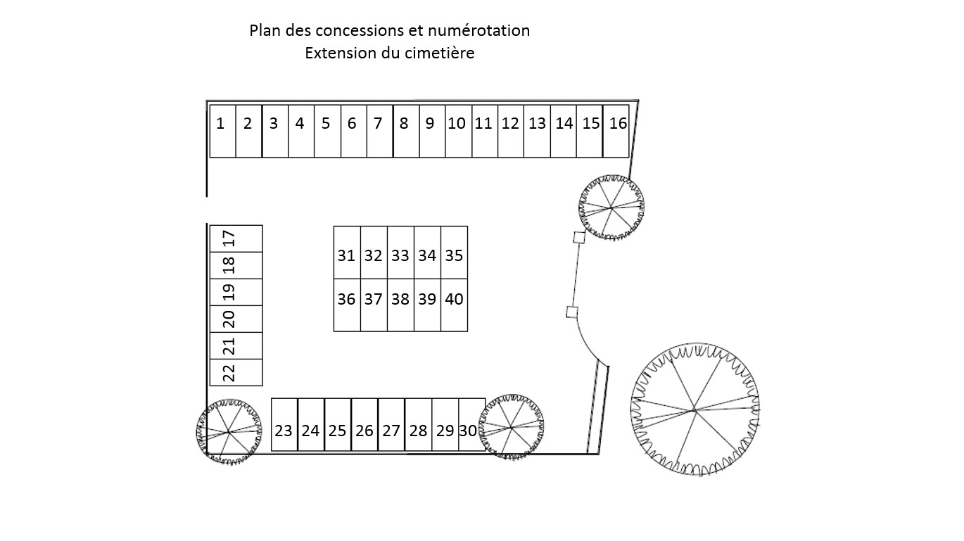 - Avril 2017 – Plan des concessions de l’extension du Cimetière
